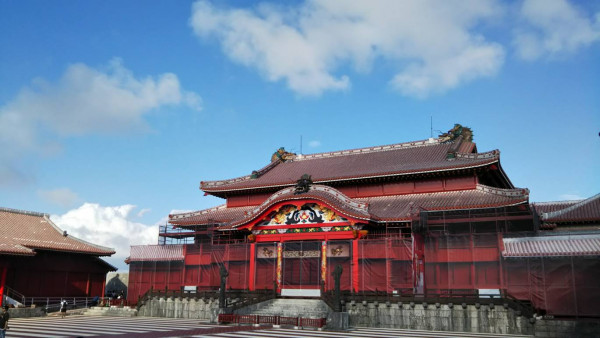 首里城は修復中のようで半分プリントの布で覆われていました。