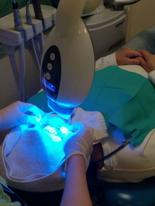 トレーを作って中にホワイトニングの薬剤を流し入れ、トレーを1~2時間装着します。