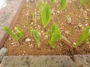 すずらんの葉がやっと顔を出してきましたよ!