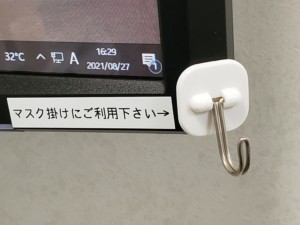 席に着きましたらまず、フックに、マスクを掛けて下さい。