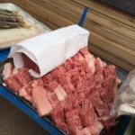 この量は、軽く二十人前くらいありそうですさよね。ペーパータオルに包まってる物も塊お肉です!この塊お肉は焼いてたたきにしましたよ。霜降りでした。