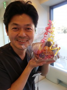 今年のバレンタインは、スタッフがタルトをプレゼントしてくれました!患者さんでも来てくださっている、こやなぎ歯科近くの「アングレーズ」というタルト屋さんのものです。葉っぱの形のチョコや、フルーツがふんだんにのっていて、本当に美味しかったです。家族で喜んで戴きました。