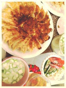 Tacosとえび餃子です。一緒に作って食べるといつもより美味しいですね。