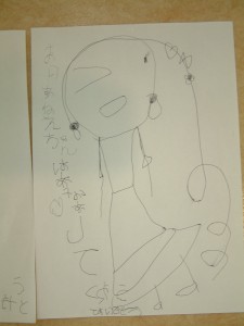 (ちなみに一番左が院長を書いてくれたもので「たつやせんせいはあなおしてくれてありがとう」と書いてあります。