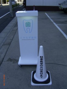 さてさて本日は看板君の横に登場しました、ポールちゃんを紹介します。彼女はこやなぎ歯科の駐車場(目の前は駐車場なんです)を見張っている、いわば警備員ですね。