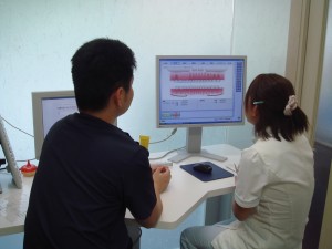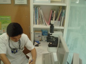 まず一枚目は院長と衛生士の石塚さんお勉強(?)タイムです。